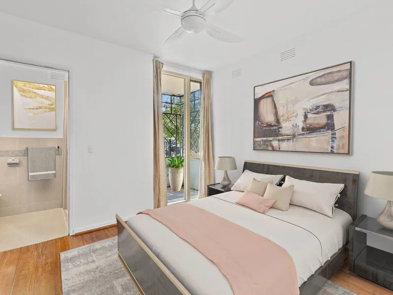 The building has a security entrance and intercom and undercover off-street car park. All this situated close to the corner of Punt and Toorak Roads but tucked away at the end of a cul-de-sac, you get the best of both worlds with shops restaurants and transport all around but remain tucked away in silence.