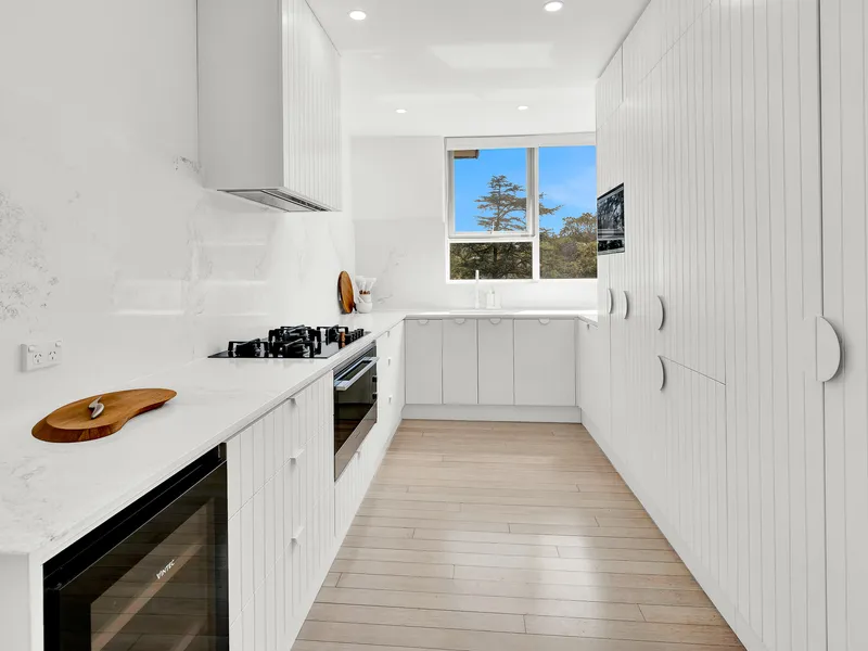 Upstairs, the accommodation is superbly zoned and highlighted by a stunning main bedroom with extensive fitted wardrobes, a built-in desk/dresser, an elegant ensuite and a private decked balcony with breathtaking park views. The generous second bedroom with built-in robes is complemented by a central bathroom and European laundry.