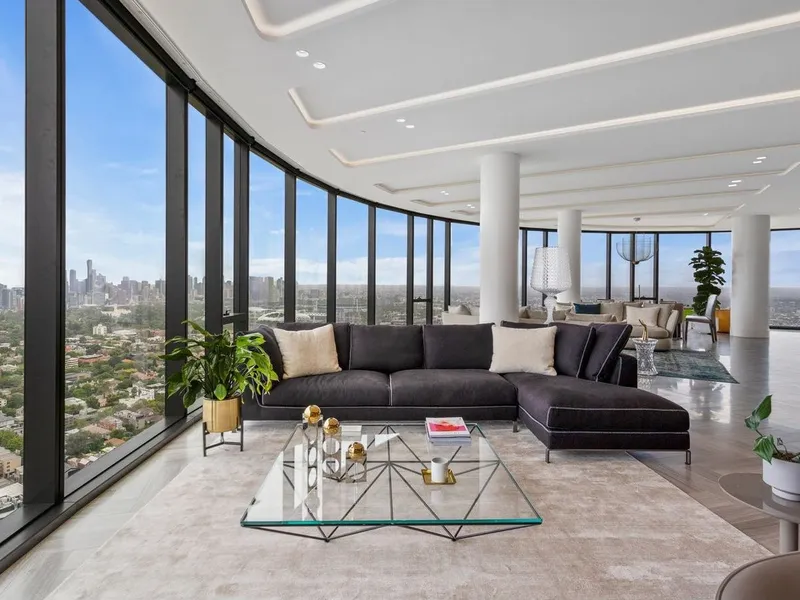 Experience unrivalled luxury above South Yarra in this extraordinary full-floor penthouse. Encased in floor-to-ceiling glass, the home offers uninterrupted 360 degree views of Melbourne’s skyline, Port Phillip Bay, and the Dandenong Ranges, creating a living experience like no other.