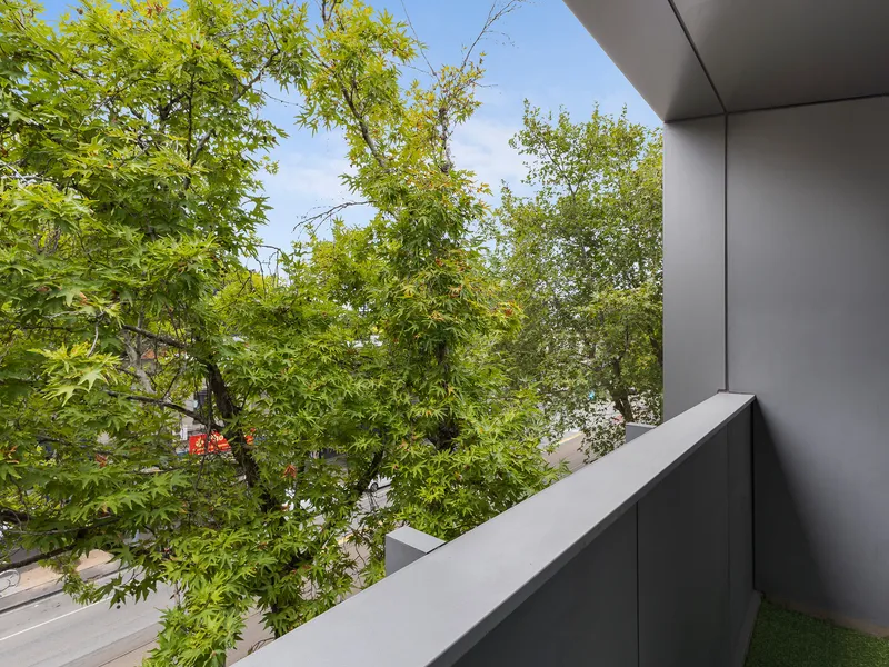 Set across two levels, the thoughtfully designed floorplan offers a spacious lower-level bedroom complete with built-in robes, its own reverse-cycle inverter split system and a stylish bathroom incorporating a European laundry. Upstairs, the expansive open-plan living and dining zone is bathed in natural light thanks to large north-east facing windows that frame vibrant outlooks over Clarendon Street, while a private balcony provides the perfect place to enjoy the urban atmosphere below.