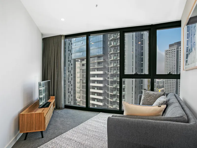 Featuring extensive views of the Yarra River and across the city to the sparkling expanses of Port Phillip Bay, this bright and airy stunningly furnished 1 bedroom apartment boasts one of the finest aspects inside the esteemed Freshwater Place residential complex.