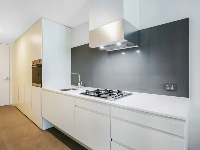 The kitchen comes with Caesar stone benches, mirrored splashback and stainless steel Smeg appliances, while the main bedroom features more astonishing views along with built-in robes. There's also a second bedroom/study, ducted air conditioning, a bathroom with a glass-enclosed shower and European laundry, and the property comes with storage space and a secure car park.