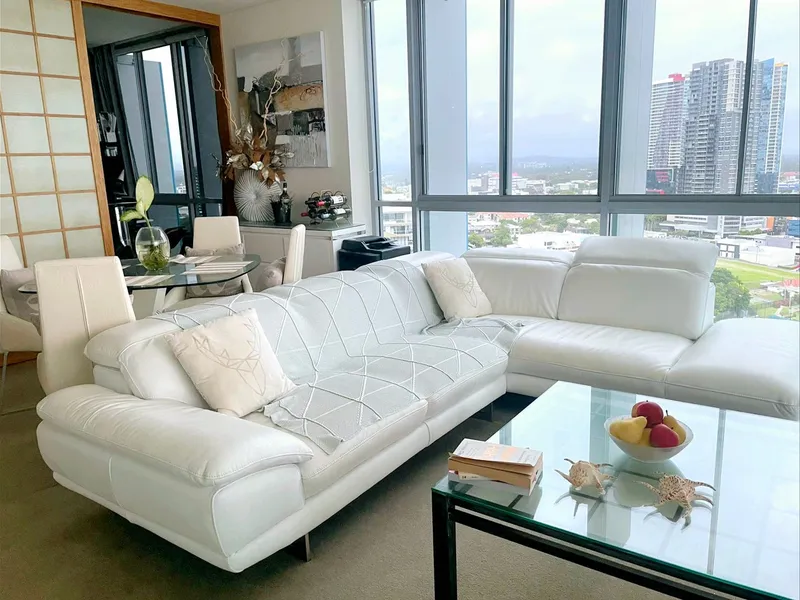 • High level security throughout huge balcony with skyline and Gold Coast views