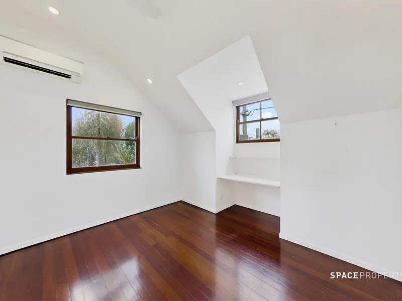 Nestled in a tranquil elevated setting in the heart of Spring Hill with dual street frontage, this sophisticated four bedroom family home offers the perfect blend of charm, comfort, and functionality just moments to the city's doorstep.