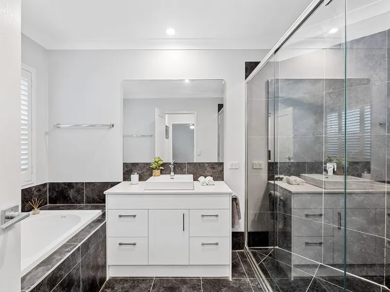 This stunning home features high ceilings, spacious interiors, and ducted air conditioning throughout, offering both comfort and style. The well-appointed kitchen includes a walk-in pantry, plumbed fridge space, and gas cooking, perfect for everyday living and entertaining.