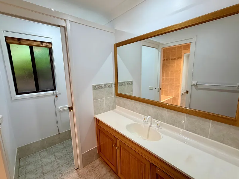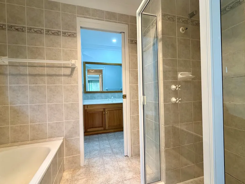 - Main three-way bathroom with a separate shower and bathtub, ideal for family living
