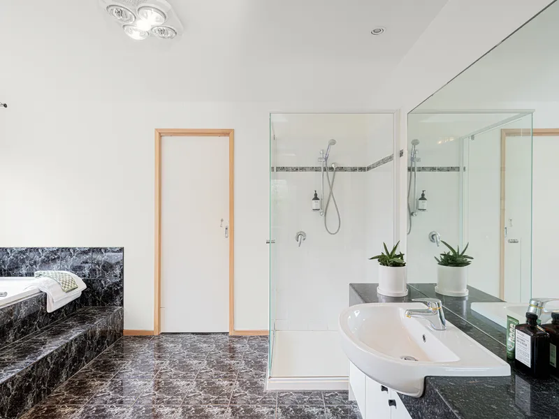 The home features 4 generous bedrooms, including a master with spectacular ocean views, a walk-in robe, and a luxurious ensuite with spa bath,balancing comfort with elegance.