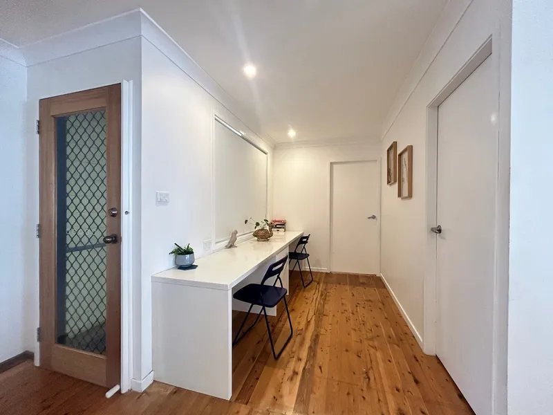 Step inside and be welcomed by a generous loungeroom that opens directly onto the front verandah, creating a bright and airy space perfect for relaxing or entertaining. The modern kitchen is a standout, featuring sleek stone benchtops and a large gas stove—ideal for those who love to cook. Two separate dining areas and a convenient study nook off the kitchen provide flexible spaces for family meals, working from home, or helping the kids with homework.