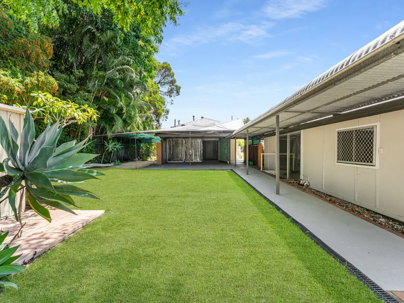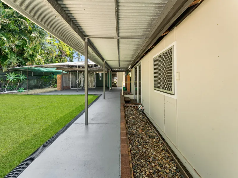 Inside, the home boasts a bright and airy living and dining space, paired with a functional kitchen offering ample storage. Three well-sized bedrooms, while two bathrooms deliver everyday convenience. Adjacent to the patio, there’s an additional versatile space that could serve as a retreat, kids’ play area, or man cave.