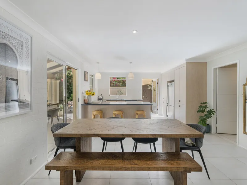 The dual-level layout features open-plan living and dining flowing seamlessly to a landscaped courtyard and covered alfresco area - ideal for everyday living and entertaining. The renovated kitchen includes stone benchtops, quality appliances and a breakfast bar. Upstairs, three well-proportioned bedrooms include a master with ensuite and balcony overlooking leafy surrounds.
