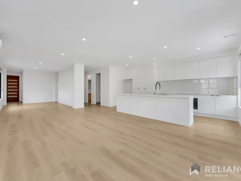 Step inside to discover an expansive open-plan living, dining and kitchen zone with timber-look floors, large windows and sliding doors that seamlessly connect to the outdoor undercover alfresco area. The sleek kitchen is a true highlight, featuring an island bench with stone benchtops, stainless steel appliances, a dishwasher and a walk-in pantry that provides excellent storage. A second lounge adds versatility, providing the ideal space for a kids' retreat, home office or quiet relaxation.