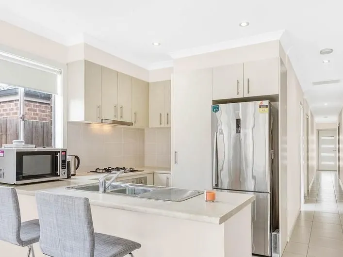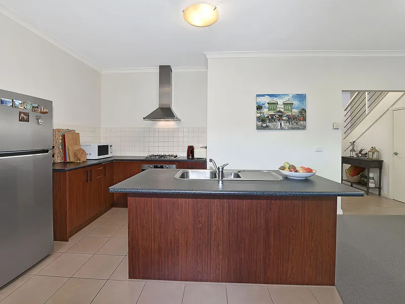 A fabulous kitchen, with solid 40mm engineered stone topped counters and island/breakfast bar, boasts quality Westinghouse stainless steel 900mm oven/gas cooktop, double door sized fridge cavity, and an abundance of storage cabinetry to deal with culinary clutter.