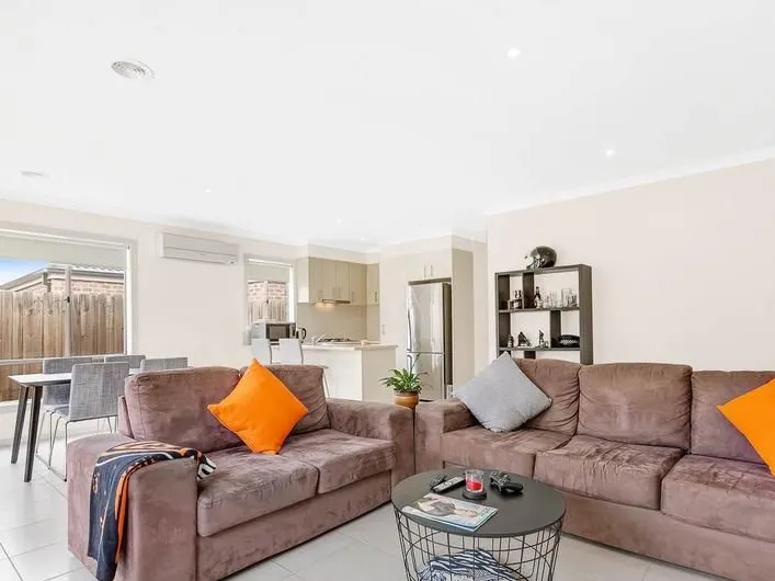 The considered floor plan features four bedrooms - a sun-washed master bed with warmly textured carpeting, designer bedside lights, walk-in wardrobe and stylish ensuite, and three further, carpeted bedrooms, each providing mirrored BIR's.