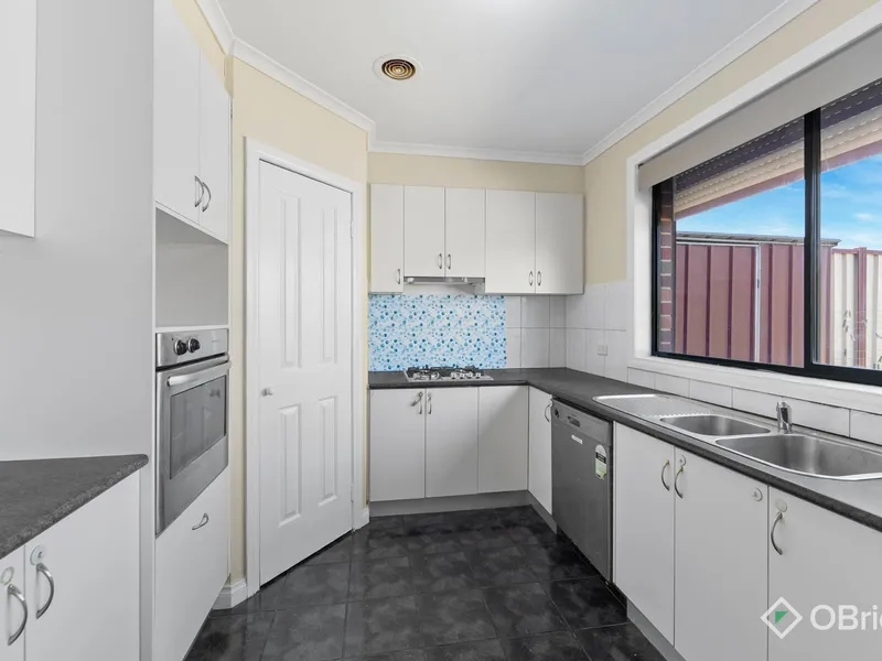Inside, you will find a spacious, light-filled living area that creates a warm and welcoming environment for relaxing or entertaining. The kitchen is generously sized and thoughtfully designed, featuring an integrated fridge, dishwasher, and a large island stone benchtop that provides additional cupboard storage, making it both highly functional and perfect for everyday cooking. All three bedrooms are generously sized and feature mirrored built-in robes, providing excellent storage while enhancing the sense of space and light.