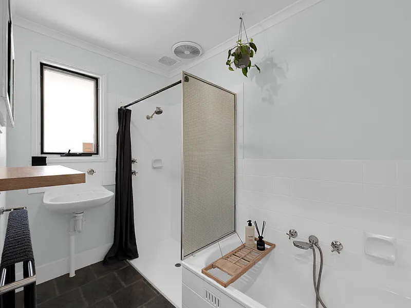 - Central bathroom with separate bath tub and shower