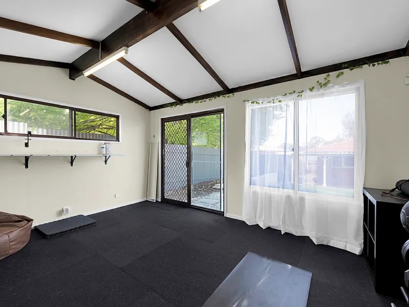- Large year yard with pergola, garden shed and rumpus/gym