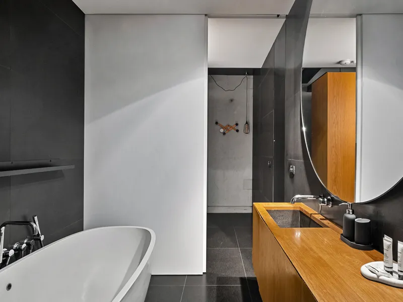 Spanning an incredible 200sqm over five sun drenched levels, this internationally famed masterpiece is a winner of countless awards, including the World Architecture Festival's World House of the Year in 2011. Constructed from monolithic precast concrete panels and an extensive use of glass, it features three separate living spaces plus a sun soaked rooftop terrace commanding spectacular city skyline views. A centrally positioned state-of-the-art kitchen features Italian marble benchspace and European gas appliances, while the lower level bedroom is appointed with extensive built-in wardrobe space and a deluxe bathroom with a standalone bathtub. Further highlights include ducted air conditioning, American Oak carpentry, Basalt stone flooring, a guest bathroom, video security intercom, internal access to an oversized remote garage and vast storage throughout. An inspired creation by acclaimed architect Domenic Alvaro, this world class offering is positioned in the heart of Surry Hills within footsteps of shops, vibrant bars and eateries, while boasting rapid CBD access.