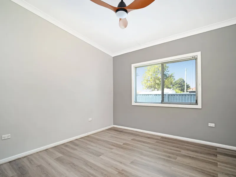 Featuring three well-sized bedrooms, a spacious living area, a functional kitchen, and a bathroom with a separate laundry, this home is designed for comfortable living. The flooring throughout the bedrooms and living room is durable linoleum, making maintenance a breeze.
