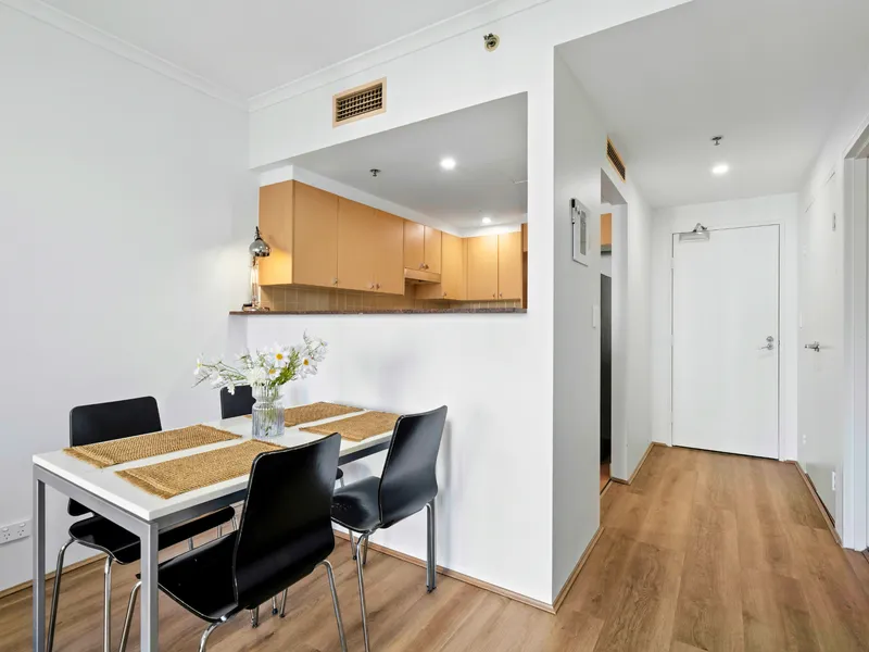 This centrally located 1 bedroom property is perfect for the business person. A modern apartment in a security building. Pool, gym, spa, BBQ & conference room in complex. City skyline views from balcony & just minutes walk from shops, restaurants & transport.