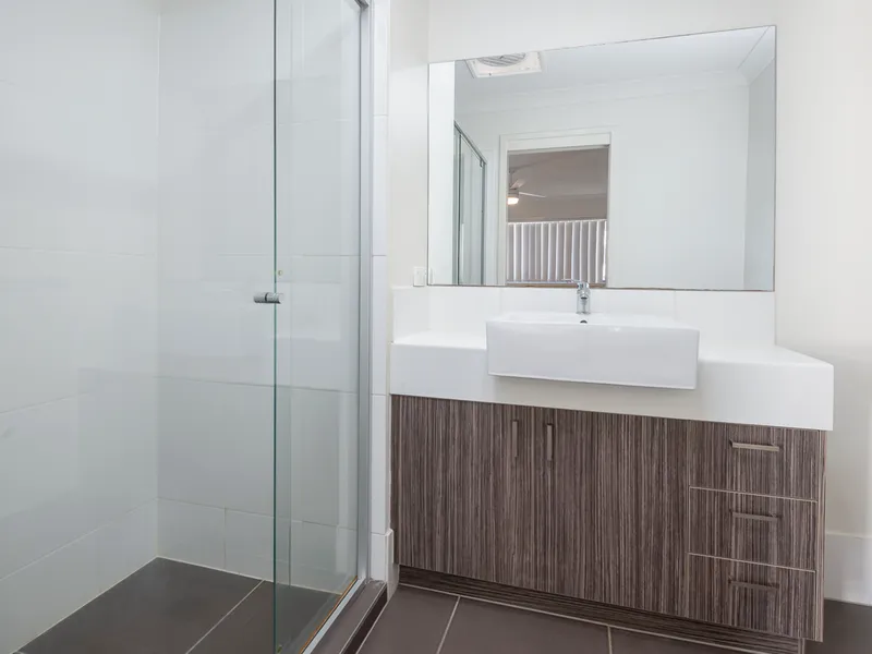 * Three spacious bedrooms with floor boards, all equipped with built-in mirrored robes and ceiling fans.