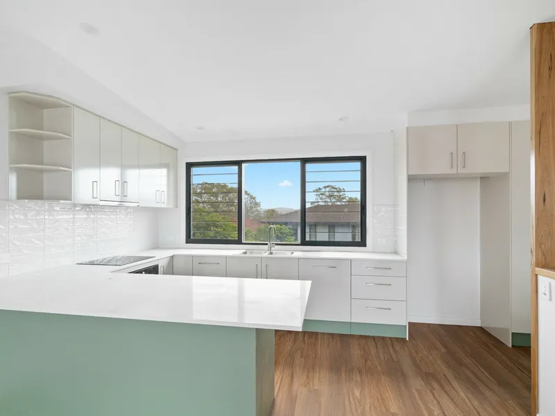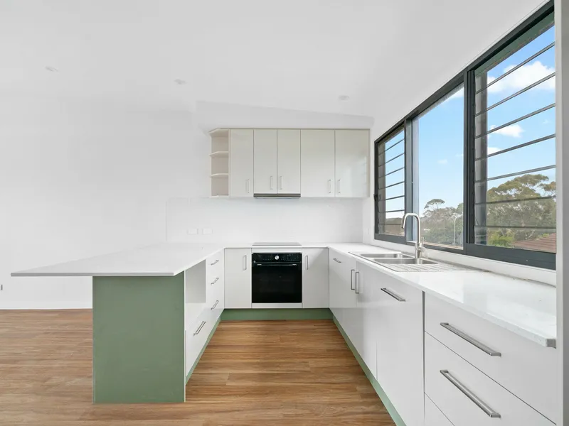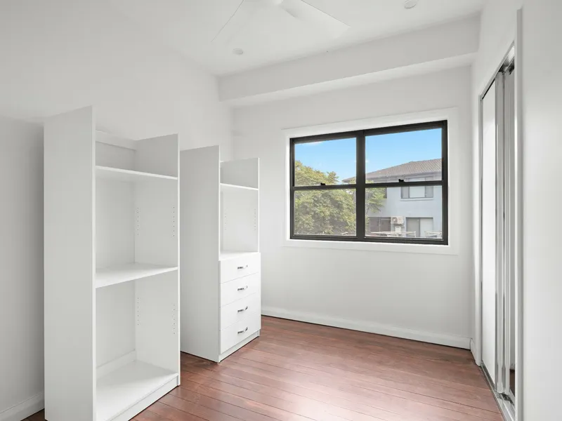 In the kitchen, everyday living is made easy with an induction cooktop, electric oven, dishwasher, and quality European appliances, all complemented by roller blinds for a crisp, contemporary finish.