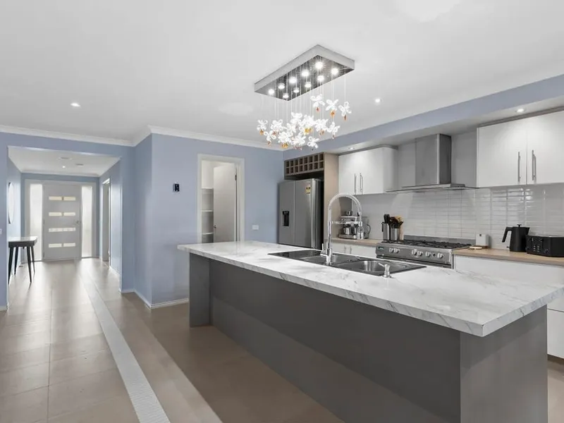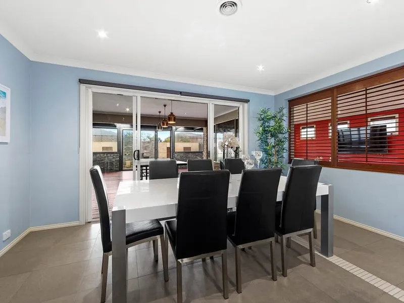 The multiple living zones cater to both formal and casual lifestyles. A refined formal lounge sets the tone for sophisticated gatherings, while the open-plan family and meals area seamlessly connects to an expansive second rumpus room. This area offers endless possibilities for entertainment.