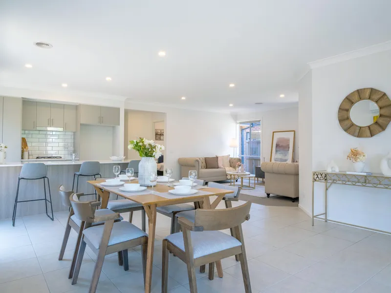 Additional features include 4 split-system cooling, fly screens, and security doors at both the front and rear. Contemporary neutral interiors, quality fixtures and finishes, and a two-car garage complete this beautiful home. Outside, the grand alfresco retreat and low-maintenance backyard offer the perfect setting for outdoor entertaining.