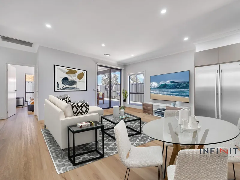 Filled with natural light and thoughtfully designed, the home comprises four well-proportioned bedrooms, including a master suite with a walk-in robe, plus a dedicated study that can easily serve as a fifth bedroom. Two modern bathrooms service the home, complemented by multiple living zones to accommodate growing families.