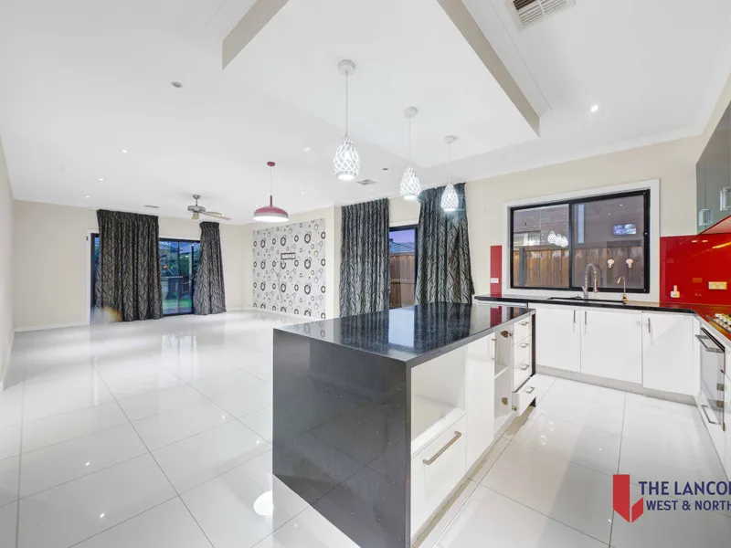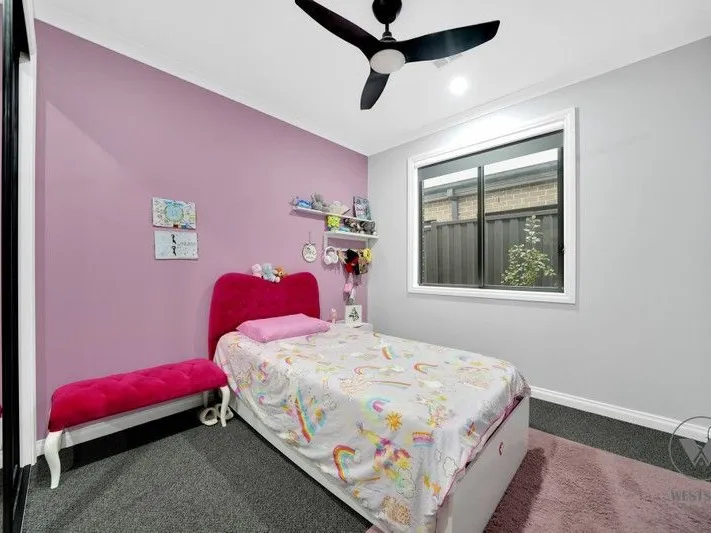 • 4 spacious bedrooms, including a master suite with a walk-in robe and an en-suite featuring a double vanity, while the remaining three bedrooms include built-in robes and ceiling fans.