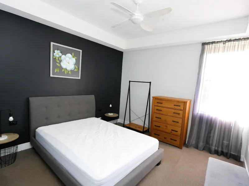 This fully furnished, top floor, 1-bedroom unit offers comfort, functionality, and convenience. The bedroom includes a double bed, clothes hanger and a large set of draws, while the bathroom doubles as a laundry, featuring a walk-in shower, toilet, vanity, laundry sink, and washing machine.