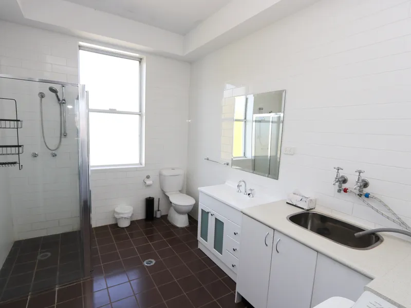 - Tiled laundry includes broom cupboard and separate toilet.