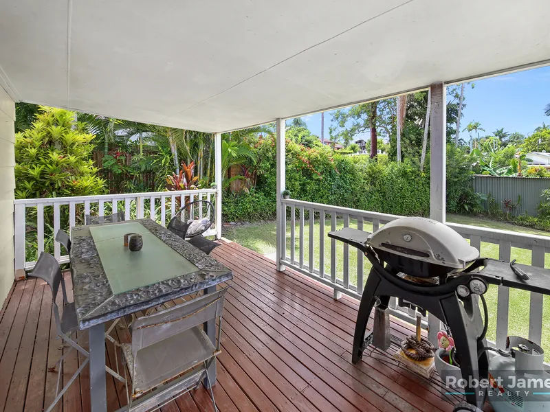 Access through the back door to a generous covered timber deck nearly the full length of the house. The back of the home is elevated off the ground allowing this area to catch lovely breezes.