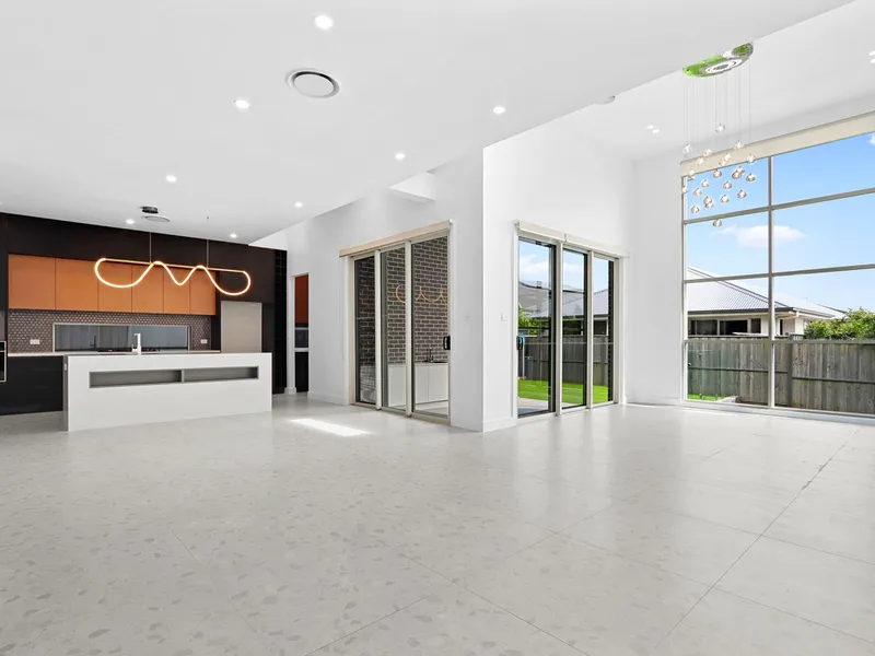 At the heart of the home is a stunning kitchen boasting 40mm stone benchtops, a large island bench, 900mm stainless steel oven and gas cooktop, perfectly positioned to overlook the open plan living and dining area. A separate lounge room provides an additional living space ideal for relaxing or entertaining.