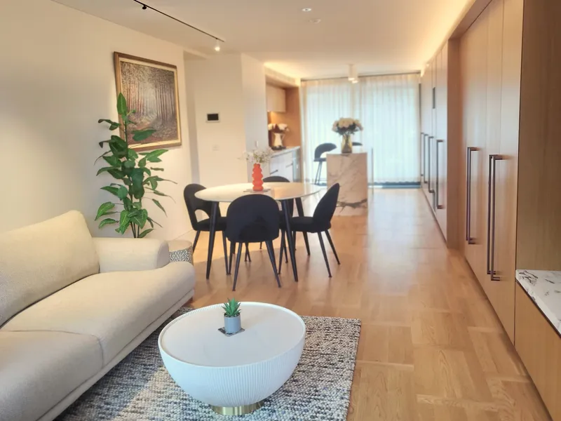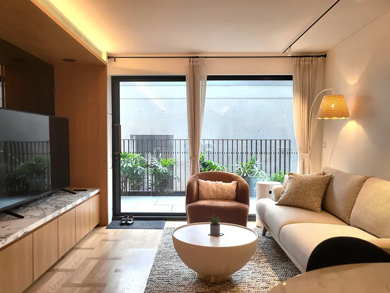 Designed for relaxed indoor–outdoor living, the apartment features a beautifully landscaped front courtyard and a secluded rear garden—perfect for entertaining, unwinding with a drink, or enjoying peaceful moments surrounded by greenery. Inside, the home is tastefully furnished with quality furniture throughout, providing a seamless, move-in-ready lifestyle.