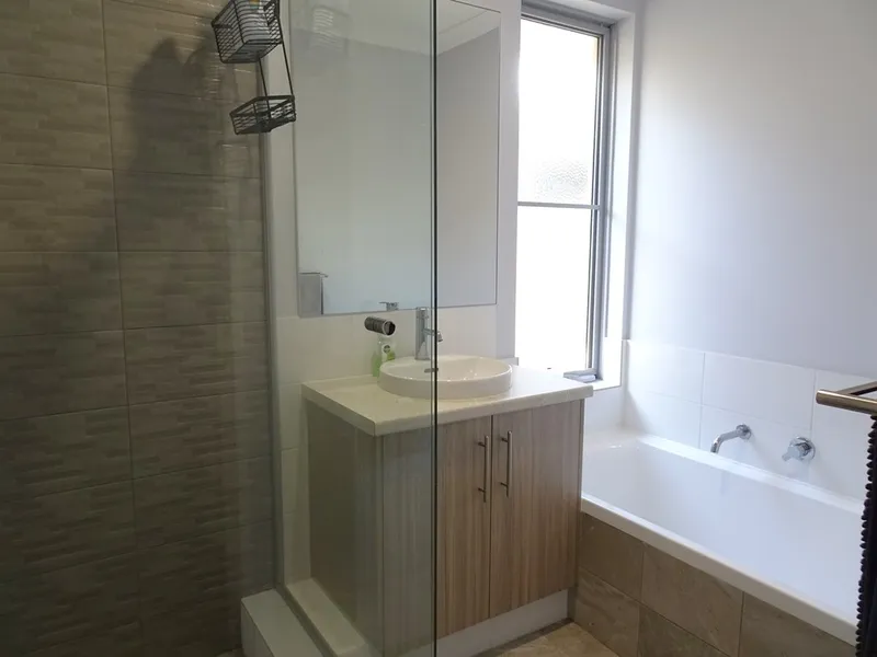 2 bathrooms, 2WCs – stylish ensuite with shower, vanity, and separate toilet. Main bathroom has shower, vanity, bath and separate toilet