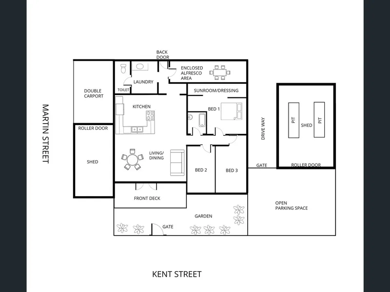 Has an enclosed extension at the back leading to the yard which has some established trees.