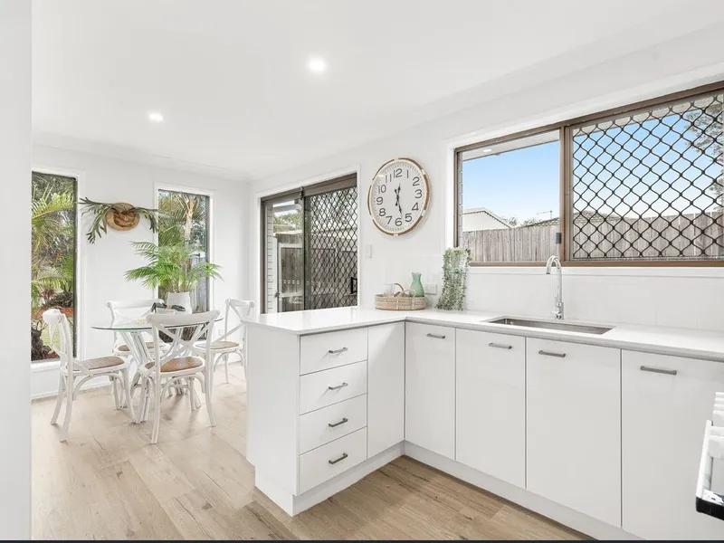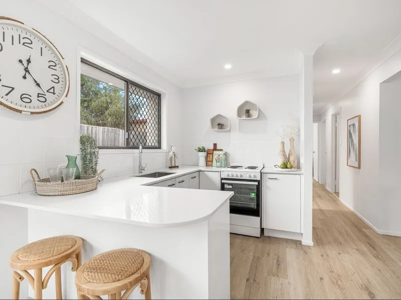 Upon entry, you are greeted with natural light throughout & a small study area. The modern brand-new kitchen accommodates large stone top bench & stainless steel appliances. It is the perfect kitchen to entertain & feed the little ones. The spacious living area with split system air conditioning is positioned with views of the alfresco area & fully fenced backyard.