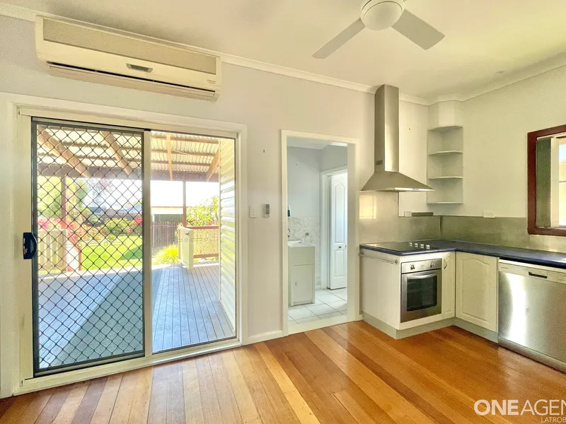 Modern flooring throughout enhances the fresh, contemporary feel of the home, while a new split-system air conditioning unit ensures year-round comfort. All bedrooms are well-sized, fitted with ceiling fans, and the overall layout provides flexibility and functionality for a variety of living arrangements.