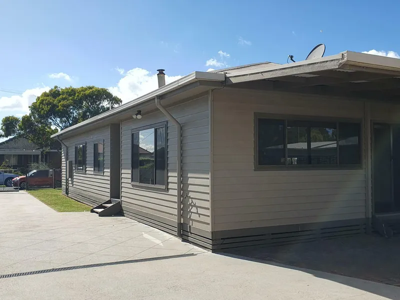 External offers, secure front and back yard, back veranda, double garage with two roller doors and long drive way.