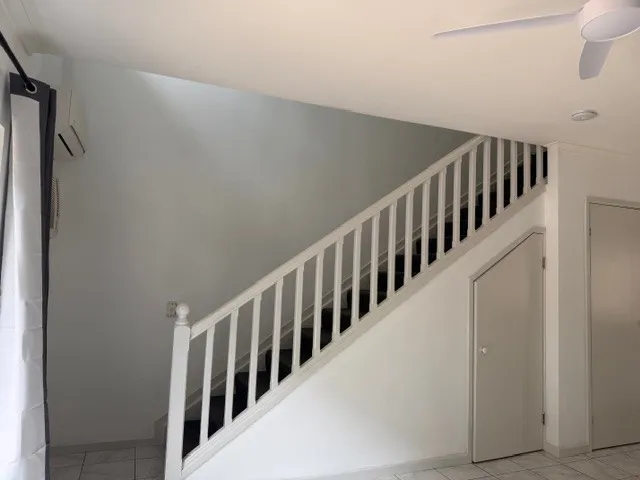 Recently updated throughout, the property presents beautifully with fresh paint, new curtains, updated kitchen benchtops and doors, and a fully renovated bathroom. The layout is practical and spacious, with the living, kitchen and laundry downstairs, while both bedrooms and the bathroom are positioned upstairs for privacy.