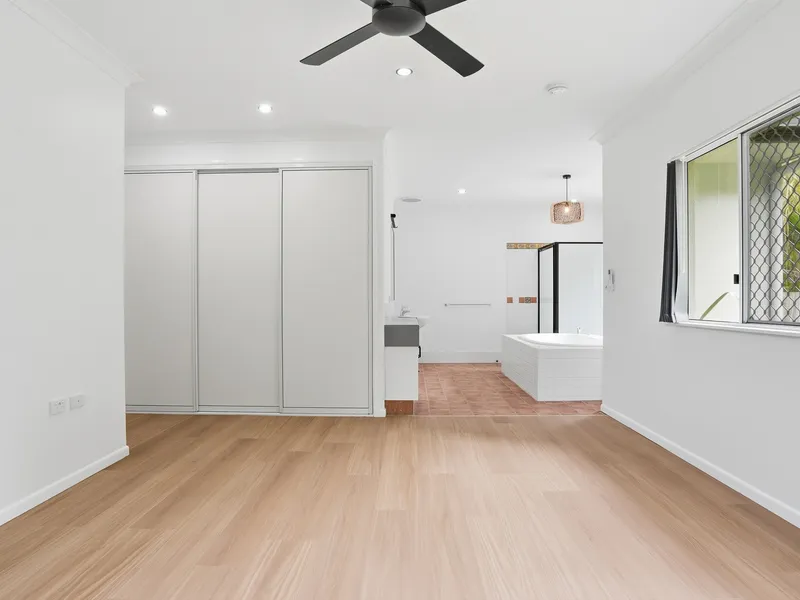 8 Bataan has undergone a complete renovation and refresh; the home is move in ready and feels like brand new from the inside. The perfect place to settle in to, expansive owners suite with spa bath view of the rainforest and gardens behind you, no neighbours and ample lawn space for sports or for children to play outside, all set in a quiet street in the popular suburb of Trinity Park close to transport, schools, shopping villages and restaurants.
