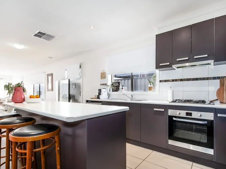 • At the heart of the home is a modern kitchen, complete with ample bench space, abundant cabinetry, and quality appliances. Overlooking the main living and dining areas, the kitchen allows for effortless interaction with family or guests while preparing meals.