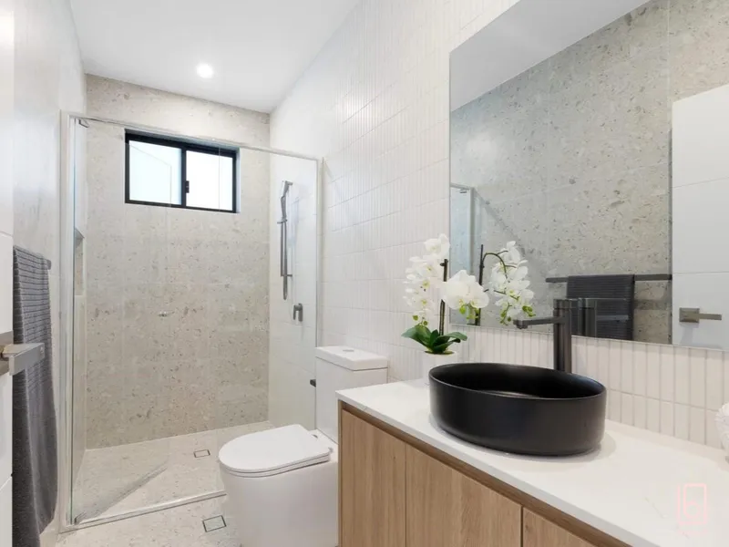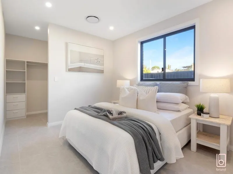 Inside you will find a sunny and bright, open plan dining and living room and a sleek, modern kitchen with luxurious designer finishes including stone waterfall bench tops. Upstairs contains the main bedroom with everything being thought of including a deluxe en-suite and a view of the lake. Good sized bedrooms could also make for a great workspace / home office, The main bathroom's truly luxurious with quality tiles and premium finishes.