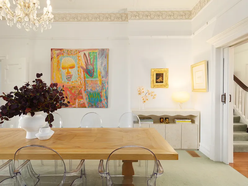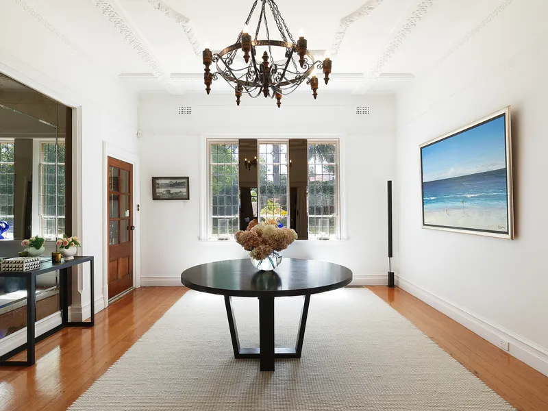 Behind its vine-covered entry, this distinguished residence showcases magnificent 14-foot decorative ceilings, chandeliers, and leadlight windows-every detail capturing the timeless allure of its era.