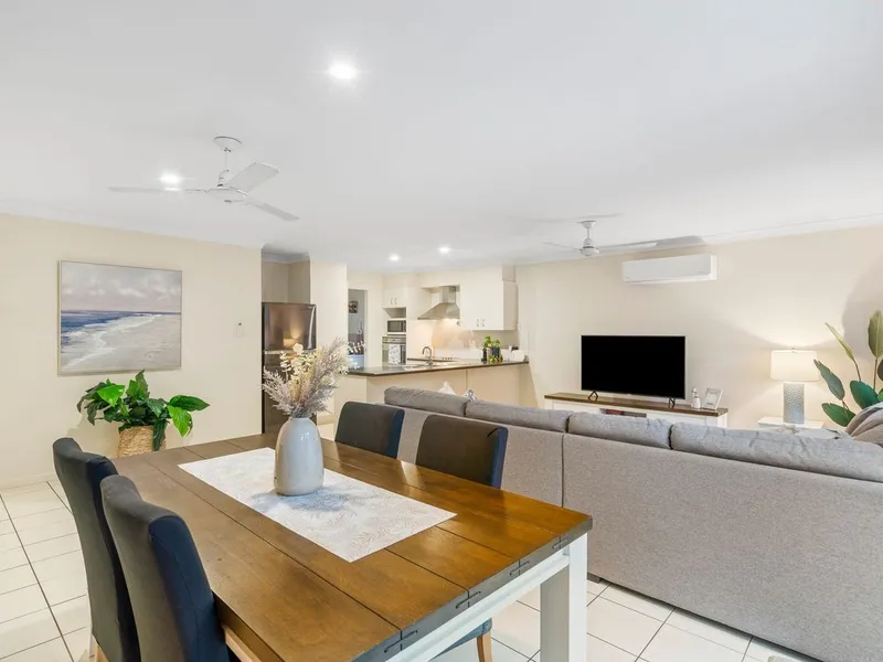 The home features a tiled, air-conditioned living and dining area that creates a cool and low-maintenance central living space. The full sized kitchen offers ample bench space and plenty of storage, making it ideal for everyday living.
