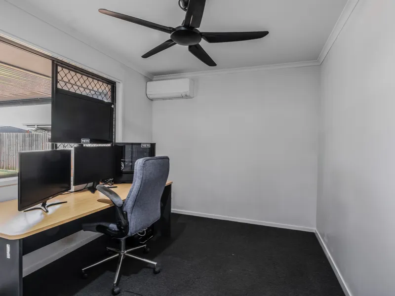 This modern 4-bedroom, 2-bathroom home offers comfortable, fully air-conditioned living throughout, including all bedrooms, and is equipped with solar for added energy efficiency. Ceiling fans are installed in the media room and all bedrooms for extra comfort, and new carpets have been fitted in the media room and all bedrooms.