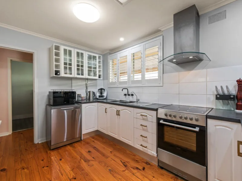 - Practical kitchen with ample bench space, drawers and cupboards