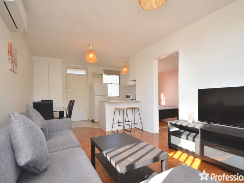 This one bedroom one bathroom apartment is fully furnished and equipped with all the items visible in the images of the property. It has parquetry wood floorboards through the living and bedroom, and tiles to the entry/kitchen and bathroom. Step inside to a light-filled, open-plan living space that flows effortlessly onto your private balcony - the ideal spot for morning coffee or sunset drinks. The property comes fully equipped, the furnishings are contemporary and comfortable, and everything is ready for you to simply move in and enjoy.