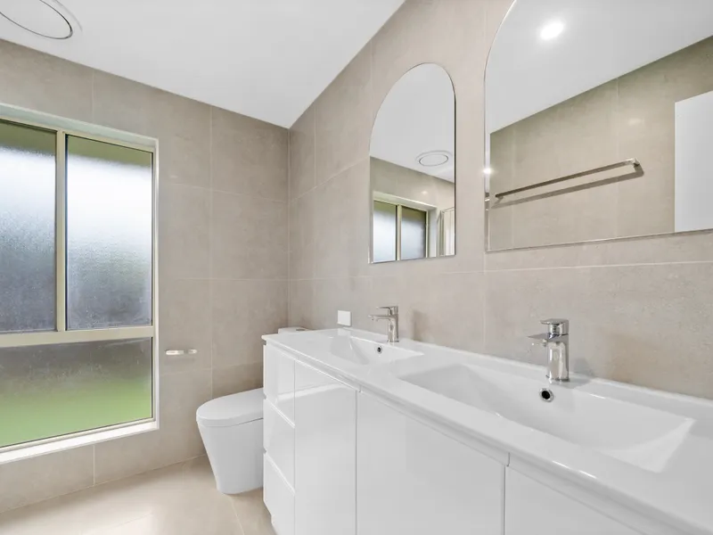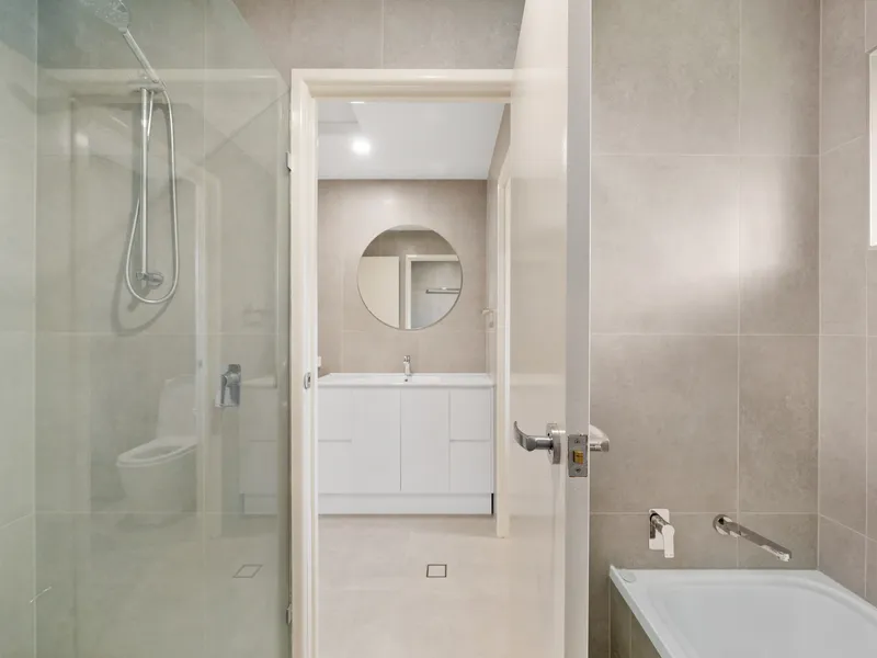 The brand new kitchen is equipped with quality appliances including a Bosch dishwasher and Westinghouse electric cooktop and oven, while both bathrooms feature floor-to-ceiling tiling, with the main bathroom including a bathtub.