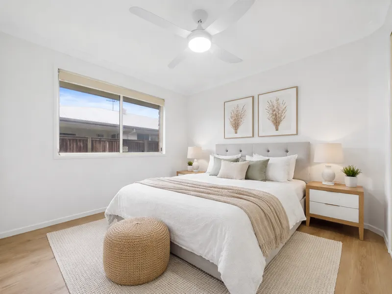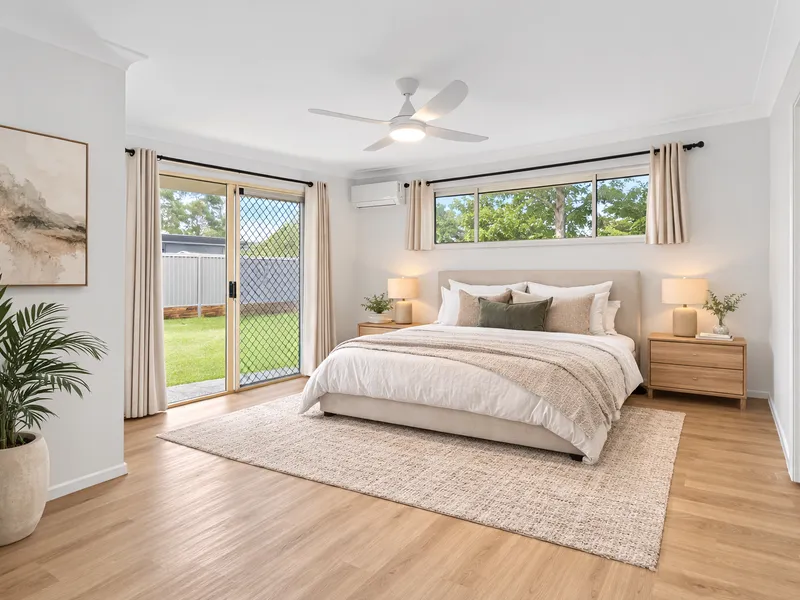 Freshly updated throughout, the home features brand new timber-look flooring, fresh paint, a stylish new kitchen and beautifully renovated bathrooms, creating a modern and low-maintenance living environment.